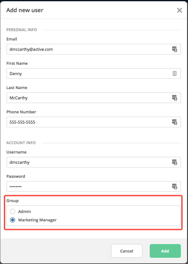 最後就可以在用戶(Users)分頁中點擊新增用戶(Add User),再替他們選擇已經建立好的用戶群組(Group)。