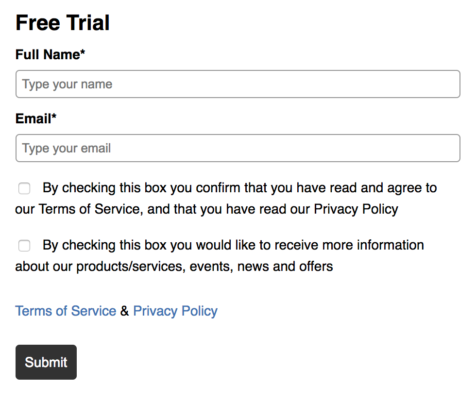 注意:您不應替聯絡人預先勾選在表格上的確認訂閱選項,因為這樣並不符合通用數據保護規定的相關要求。
