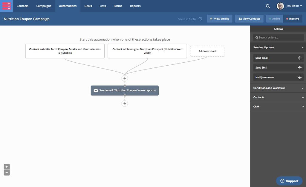 配合表格、網站追蹤和交易機會等功能一起使用,您便可以做出更具針對性和個人化的自動營銷流程。
