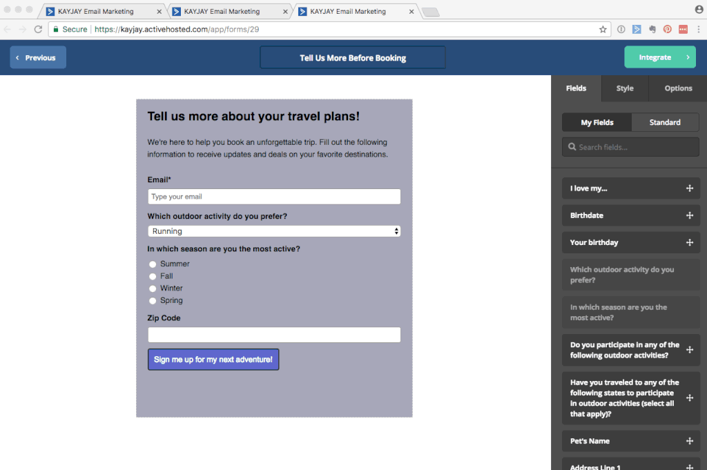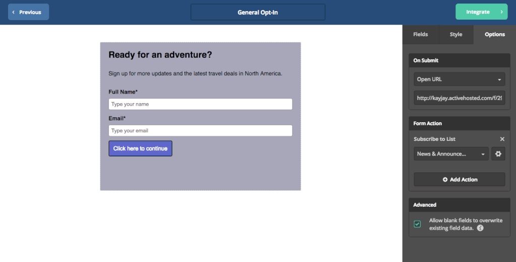 注意:客戶管理系統會把所有與聯絡人有關的個人資料都關聯到他們的電郵地址之上,因此任何表格都應該含有電郵地址欄位,使系統能夠把聯絡人所提交的全部資料都可以正確地儲存起來。