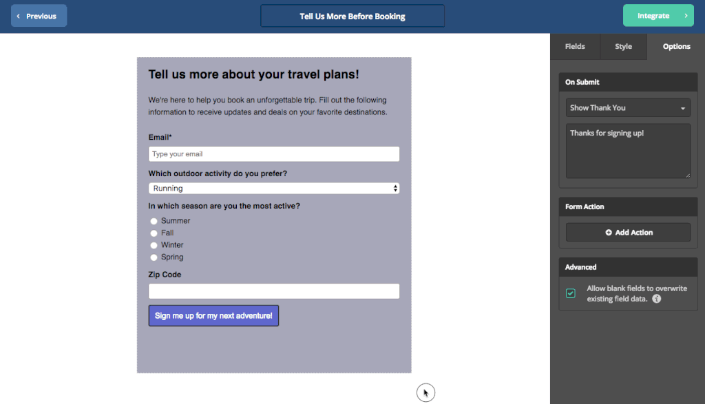 通過多重表格來分段收集聯絡人的個人資料,能有效增加他們向您提交表格的機會,以達成您想要收集他們資料的最終目的。