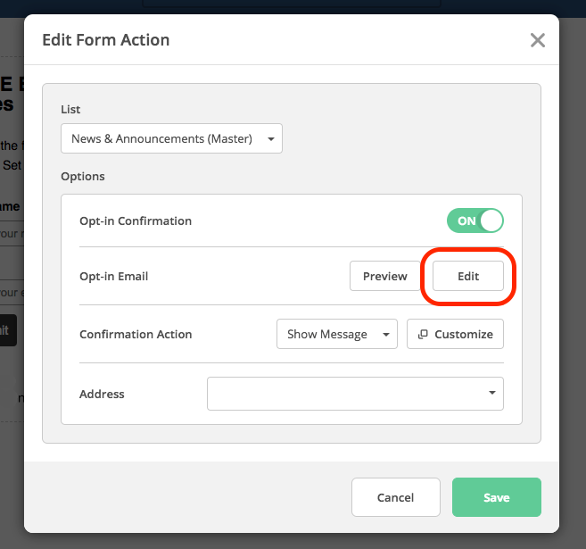 在確認訂閱功能的設定畫面中點擊編輯(Edit),然後便可以編輯確認訂閱電郵(Opt-in Email)的內容。