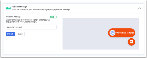 在網上聊天(Conversations)的歡迎訊息(Welcome Message)中可以設定網上聊天的歡迎開場白。