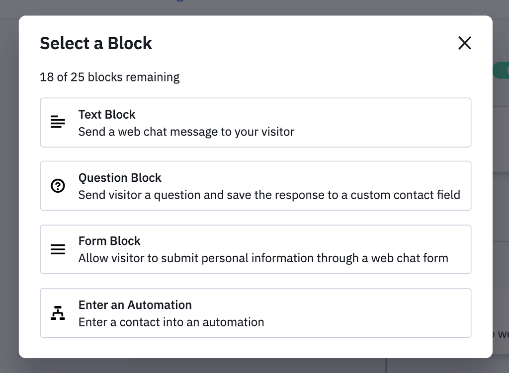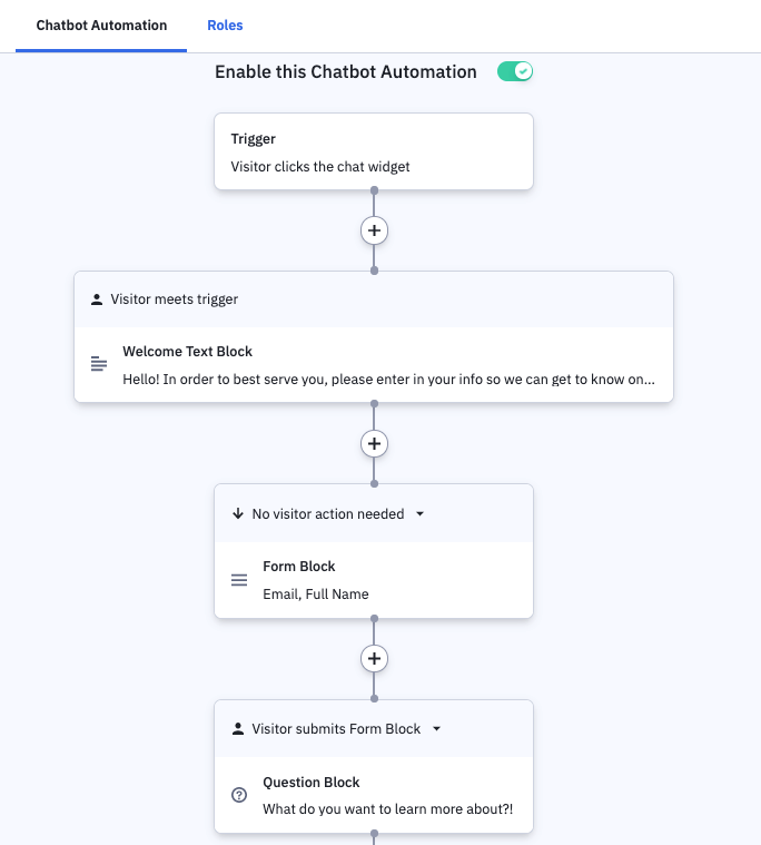 4. 啟動自動營銷流程(Enter an Automation) – 讓您可以替網上聊天的聯絡人啟動自動營銷流程,但您必須先收集到他們的電郵地址,這樣便可以在系統的自動營銷功能中繼續去跟進他們。