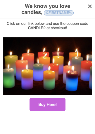 當聯絡人正在瀏覽您的網站時,這可能就是向他們發送商品推介的最佳時機。使用個人代碼來個人化您的訊息內容,這樣將會更加容易吸引他們的注意。