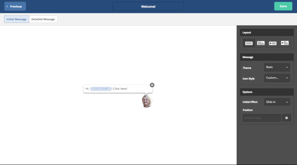 您可以在網站通訊的初始訊息(Initial Message)中,使用個人代碼來個人化您的訊息內容。