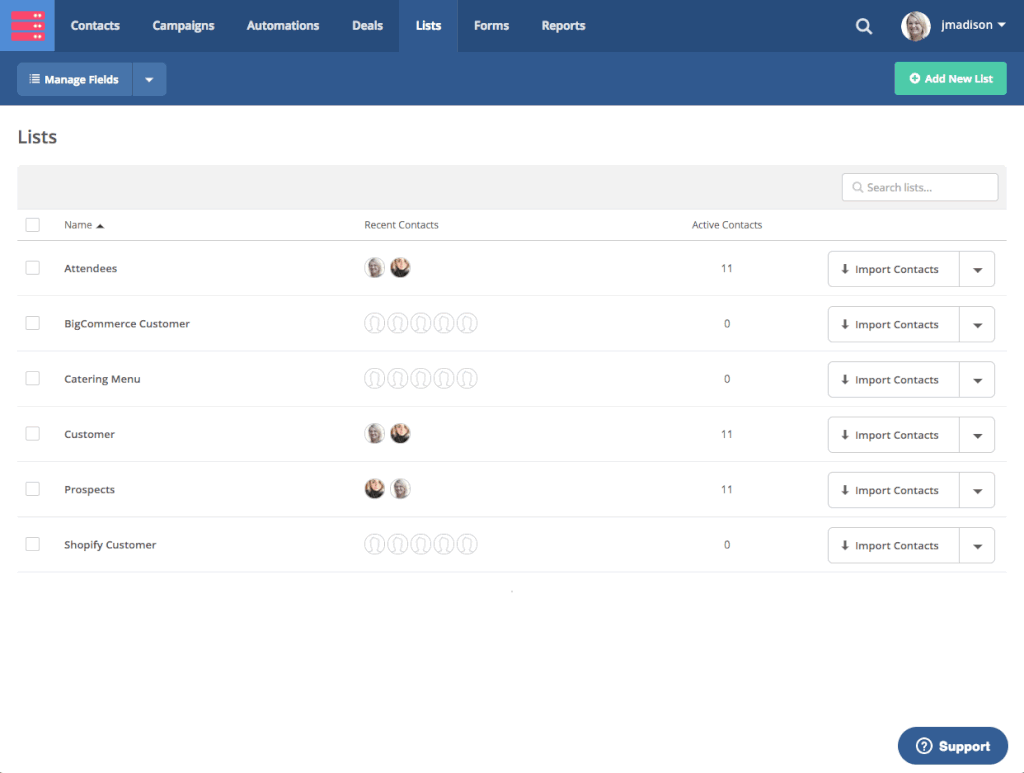 如要使用SMS通訊向聯絡人發送活動邀請,您可以先建立一個列表用來儲存經SMS通訊來完成活動註冊的聯絡人資料。在列表(Lists)頁面中點擊新增列表(Add New List),完成設定後再按建立列表(Create List)。