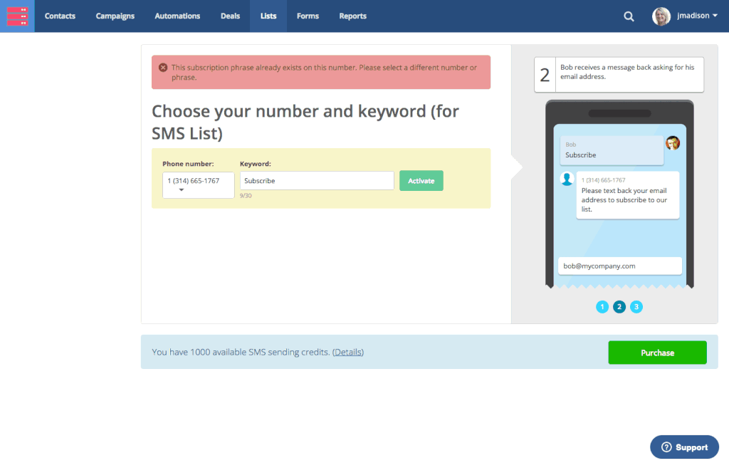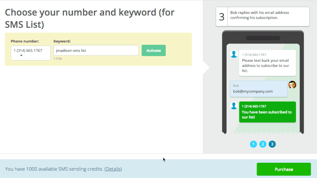 在剛建立的列表上,選擇訂閱列表SMS(Subscribe by SMS)。