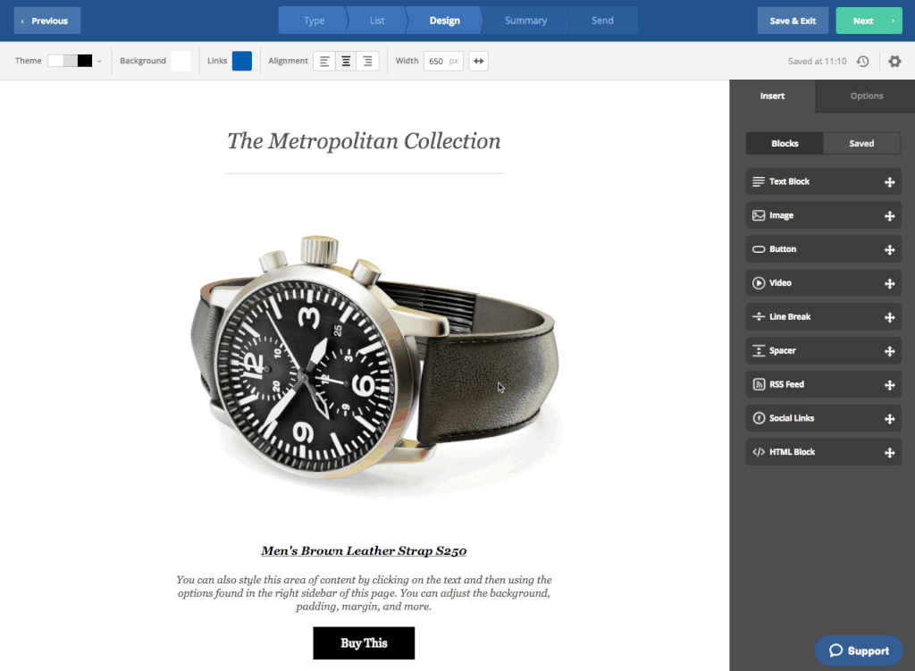 您亦可以在營銷電郵內把兩個不同的內容區域分別都設定為動態內容,再把它們的顯示條件設定到兩組不同的聯絡人。例如是在一個促銷活動的營銷電郵中,向男性聯絡人顯示含有新款手錶的動態內容,並向女性聯絡人顯示含有珠寶首飾的動態內容,這樣您的營銷電郵內容便能夠更容易引起他們的興趣了。