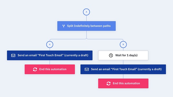 在自動營銷流程中通過分組測試來分批發送電郵,這樣能有效減少因為在同一時間之內發送大量電郵,而對您的電郵可傳遞性所帶來的負面影響。