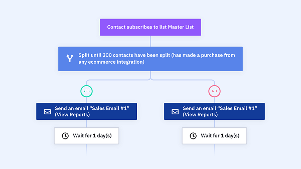 每當有聯絡人向您訂閱通訊時,自動營銷流程便會自動通過分組測試去向他們分別發送兩個不同版本的營銷電郵。