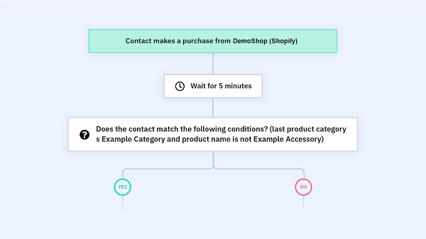 每當有聯絡人在您的網店中完成購買時,自動營銷流程便會自動向他們發送交叉銷售電郵。