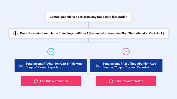每當有聯絡人在您的網店中棄置購物車時,自動營銷流程便會自動向他們發送含有折扣優惠的結帳提醒電郵。