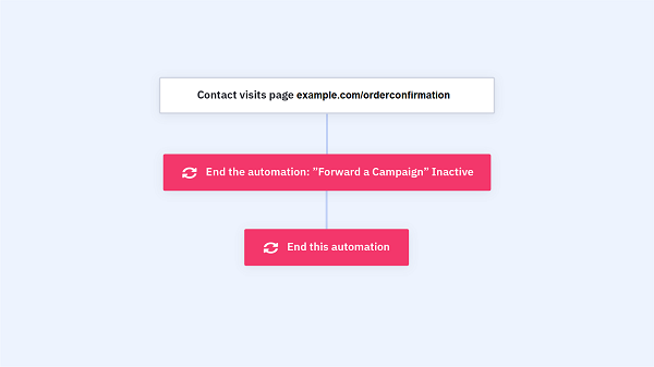 2. 替流程中的聯絡人在<向棄置購物車的聯絡人發送結帳提醒(第1部份)>中結束自動營銷流程(End other automation)。