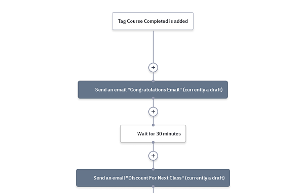 每當有聯絡人被附加教學通訊標籤時,自動營銷流程便會自動向他們發送含有教學內容的序列電郵。