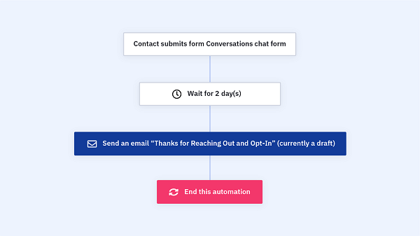 每當有聯絡人在您的網站上與您進行網上聊天時,自動營銷流程便會自動向他們發送跟進電郵。