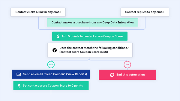 每當有聯絡人與您進行互動時,自動營銷流程便會自動替他們計算積分。