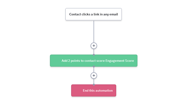 每當有聯絡人在您的營銷電郵中點擊連結時,自動營銷流程便會自動替他們調整評分。