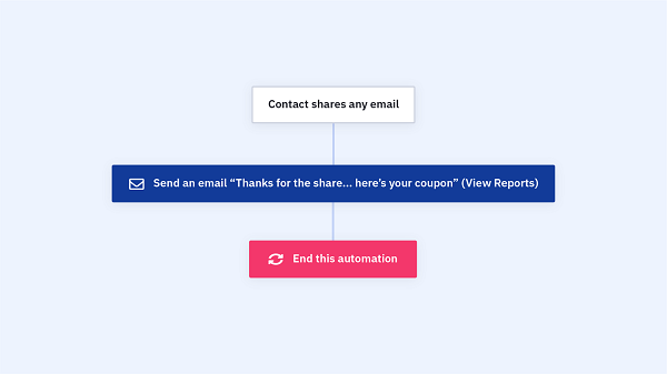每當有聯絡人在您的營銷電郵中進行分享時,自動營銷流程便會自動向他們發送含有分享回贈的感謝電郵。