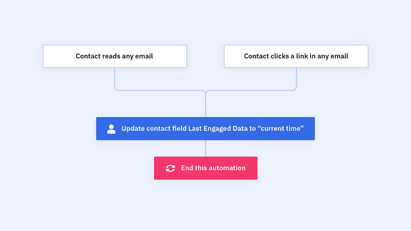 每當有聯絡人在您的營銷電郵中進行互動時,自動營銷流程便會自動替他們更新最近互動日期的欄位內容。
